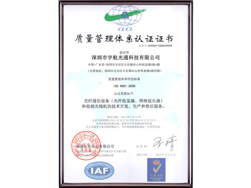 質(zhì)量管理體系認(rèn)證證書
