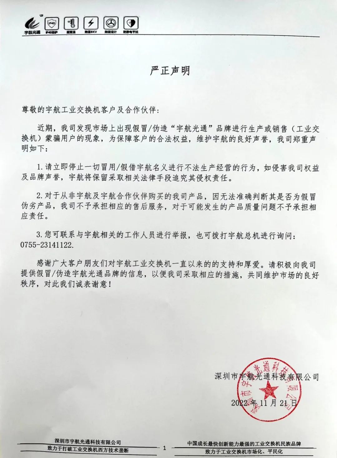 宇航工業交換機發布關于假冒/偽造的重要聲明!
