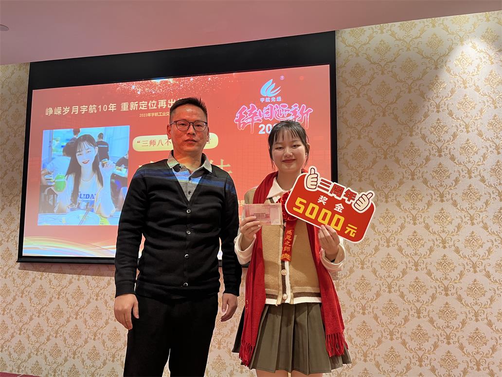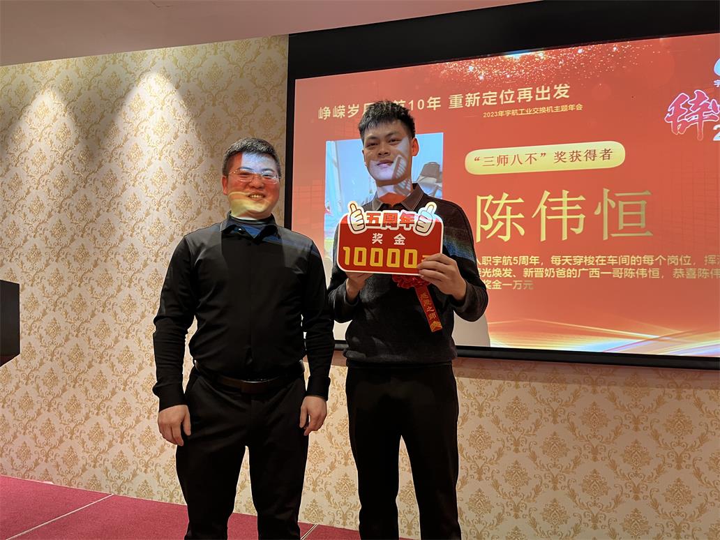 陳偉恒—入職宇航五周年獎,獎勵現(xiàn)金一萬元。每天穿梭在車間的每個崗位,揮灑汗水、容光煥發(fā),宇航能夠做到高效、并保質(zhì)保量的出貨,離不開他的辛勤付出。