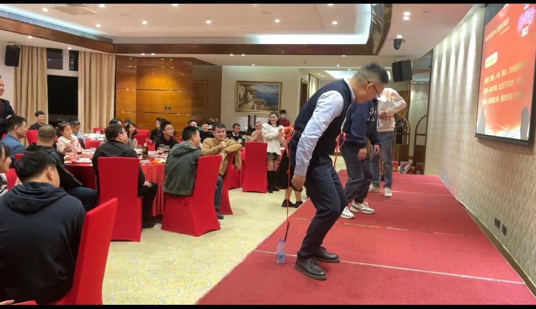 頒獎結(jié)束,當(dāng)然要有小游戲來熱熱場子,調(diào)動氣氛。現(xiàn)場準(zhǔn)備了2個游戲,蒙眼吃香蕉和蜻蜓點(diǎn)水,大家都踴躍參加小游戲,兩兩搭檔或者三人一組,配合默契,親密無間,既拉近了彼此的距離,也意識到了團(tuán)隊(duì)合作的重要性。游戲過程中,大家都感到歡樂、放松,同時現(xiàn)場氣氛也異常活躍,臺上的參賽者搞笑的動作和不知所措的小手惹得大家捧腹大笑,時常有人吹起口哨,喊起口號,為參賽者加油助威。游戲結(jié)束之后,獲勝者還獲得紅包一個。