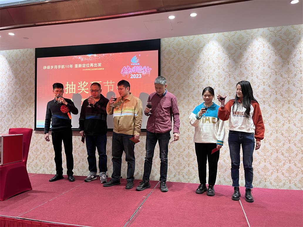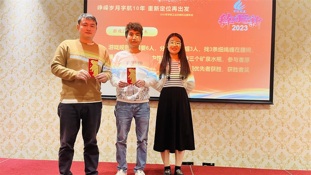 7日17:00整,2023宇航工業(yè)交換機(jī)主題年會正式開始,時長四個小時,整個過程有夢想,有感動,有感恩,有頒獎,有游戲,有抽獎,整個現(xiàn)場熱火朝天,掌聲雷動。