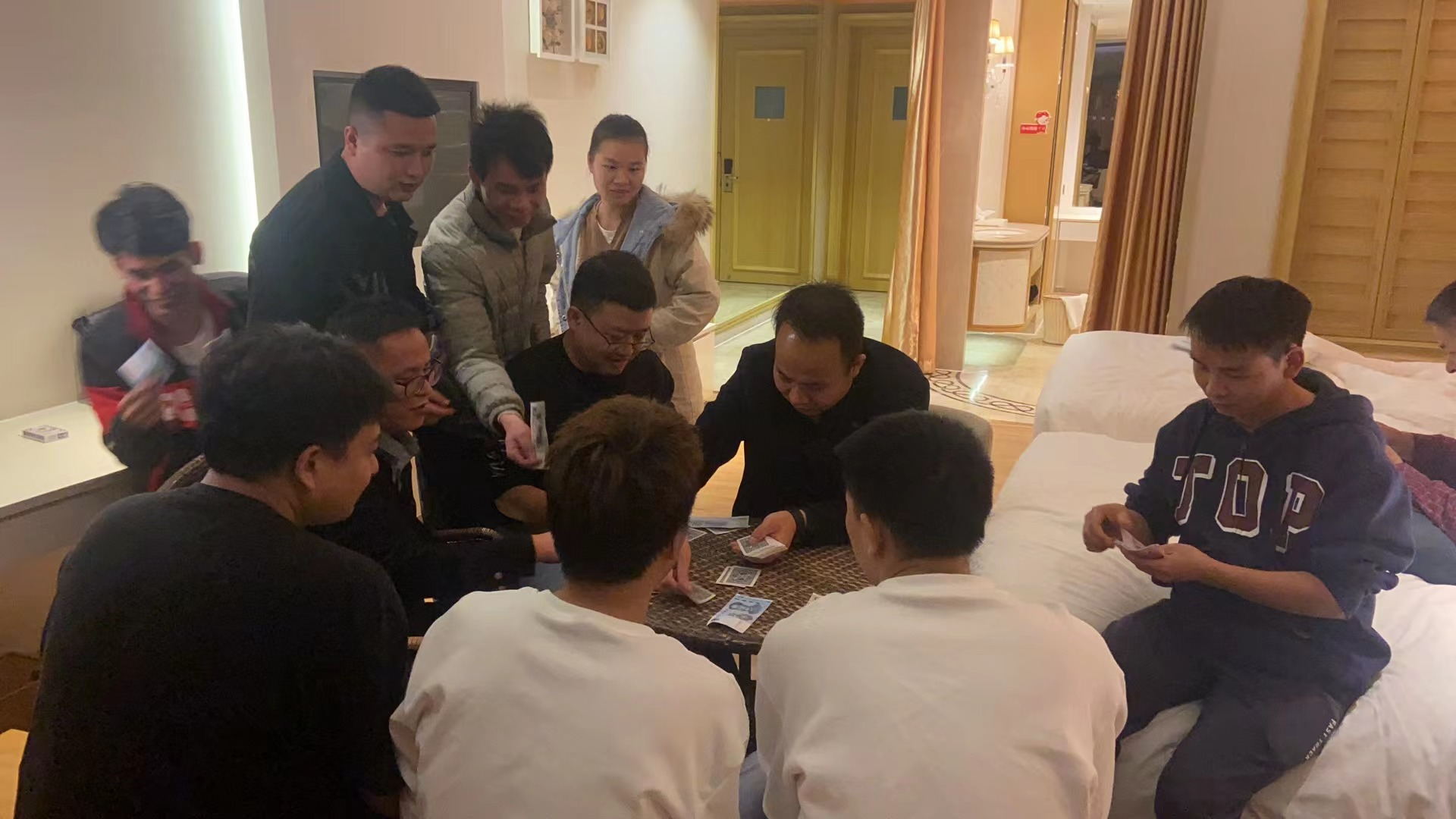 晚宴后,大家摸著圓圓的肚皮,邁著自己的大長腿,三五成群非常默契的一起沖向老板的房間,此時大家都知道,老板又要“送錢”啦,名義上是玩棋牌,實(shí)際上是變相發(fā)錢,只見老板拿出背包,裝了數(shù)不清的錢,見人就給一沓,隨即進(jìn)行棋牌游戲,不管牌的大小,扛不住老板明目張膽的放水啊,數(shù)次回合下來,只見大家手里人民幣紅的綠的一大把,而老板兩手空空。結(jié)束后,大家一起聊天,看夜景,絲毫感覺不到困意,有聊不完的夢想,聊不完的感動,最后大家在依依不舍中結(jié)束了一整天的歡樂時光。