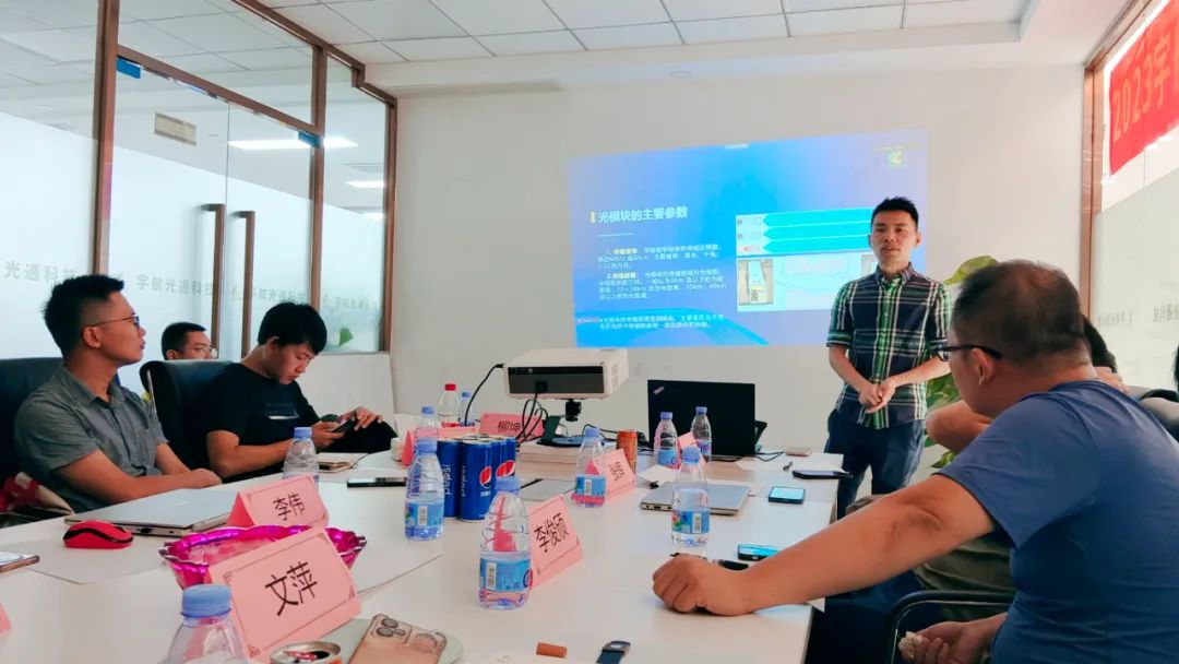 第二天上午,產品經理柳工為大家進行產品知識培訓。隨著工業通信時代的快速發展,為滿足市場需求,宇航推出了一系列新產品。寬溫系列、“清涼一價”等新品一上市,前來咨詢的客戶就源源不斷。基于此,柳工針對新產品的設計和用途給大家進行了培訓,大家紛紛認可,全體成員認真學習、積極互動,相互啟發、相互促進、共同進步,交流學習達到了良好的效果。