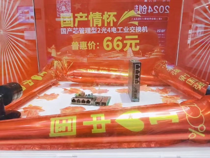 在本次CPSE安博會上,宇航展出了“6U-6萬兆48電”、"24個萬兆光口+2個100G光口"、"6萬兆+24個2.5G電口"、"6萬兆+3個子卡插槽"、"TSN 2萬兆光+4x2.5G光+8千兆電"“全國產(chǎn)工業(yè)交換機”等業(yè)內(nèi)首次上市的工業(yè)級交換機,最后國產(chǎn)芯片的全國產(chǎn)管理型千兆2光4電拔得頭籌,堪稱“鎮(zhèn)館之寶”,各方對此款產(chǎn)品評價甚高,這款產(chǎn)品標(biāo)志著我們國產(chǎn)工業(yè)交換機完全可以不依賴外資關(guān)鍵元器件,這將對整個中國工業(yè)交換機行業(yè)的產(chǎn)業(yè)鏈發(fā)展產(chǎn)生深遠影響。