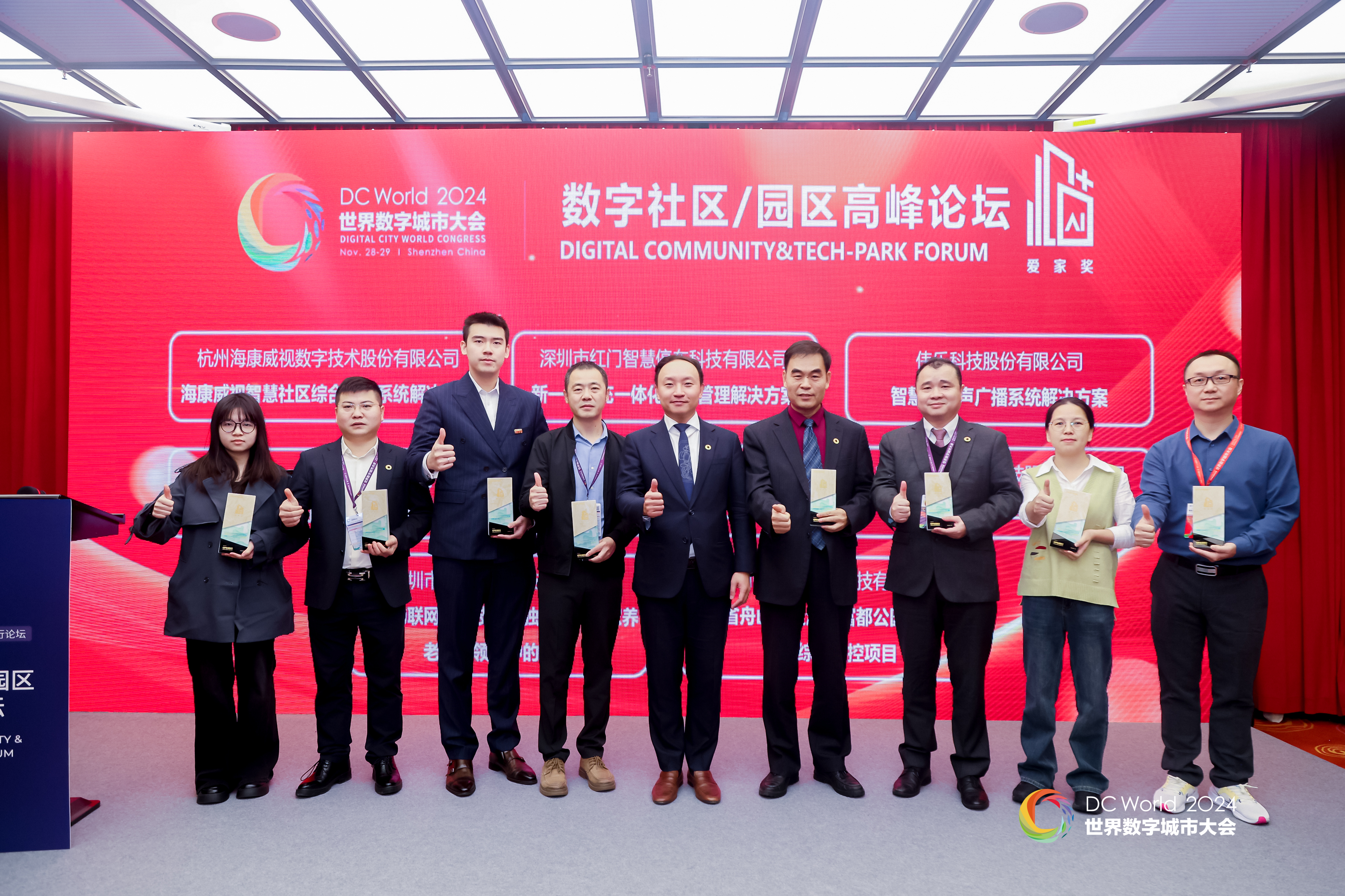 會上,宇航全國產(chǎn)工業(yè)交換機的一個智慧越園區(qū)項目榮獲了2024數(shù)字社區(qū)/園區(qū)“愛家獎”,這一殊榮不僅是對項目成就的認可,也是對宇航全國產(chǎn)工業(yè)交換機創(chuàng)新能力和技術實力的肯定。宇航工業(yè)交換機聯(lián)席總經(jīng)理劉偉成代表宇航領獎,深圳市政協(xié)委員、世界數(shù)字城市大會秘書長、深圳市智慧城市產(chǎn)業(yè)協(xié)會執(zhí)行會長楊鵬博士為其頒發(fā)了獎杯,對宇航在全國產(chǎn)工業(yè)交換機領域取得的突出成績表示祝賀,并合影留念。