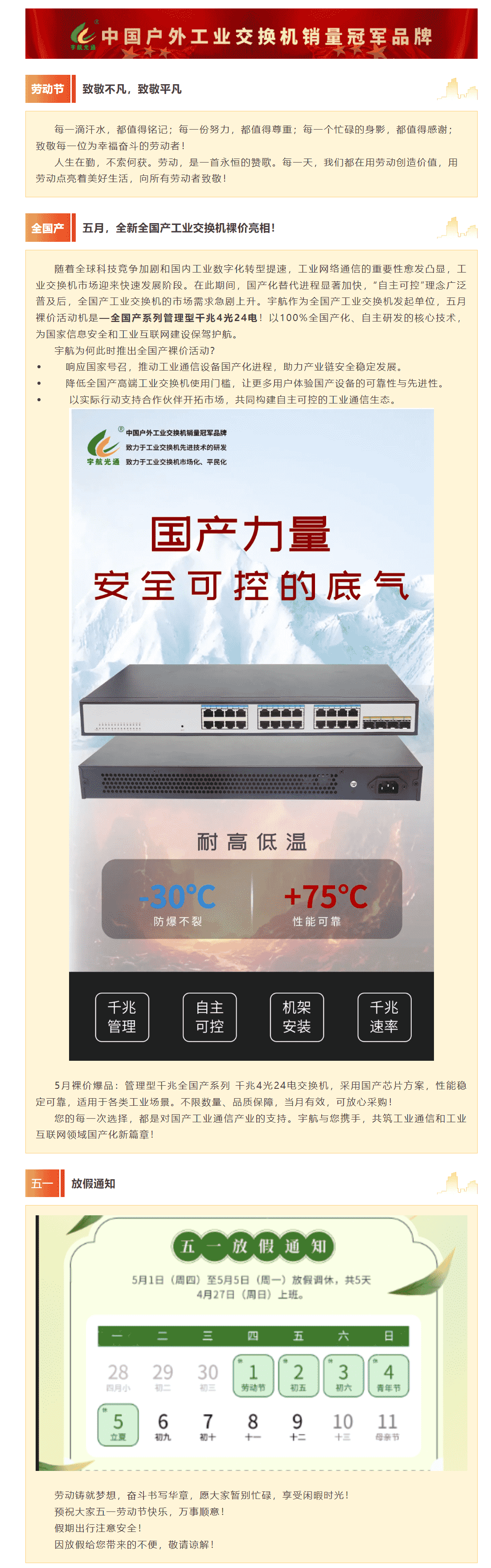下一篇:【預告】宇航工業交換機5月活動詳情請查收!