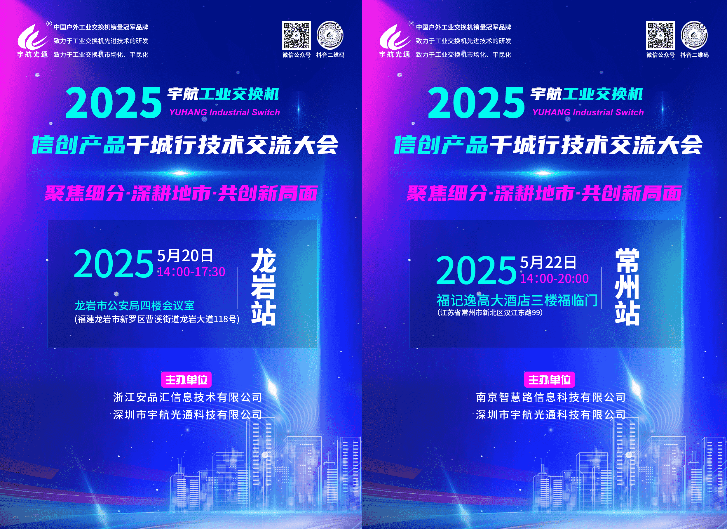 2025年5月13日至17日,宇航工業(yè)交換機連續(xù)亮相全國多地重要行業(yè)展會,包括重慶工業(yè)自動化展、2025中國石油石化企業(yè)信息技術(shù)交流大會、山東水展、四川電力展,同時成功舉辦了千城行江蘇南京站、福建泉州站及福建廈門站系列技術(shù)交流活動。作為全國產(chǎn)工業(yè)交換機發(fā)起單位和中國戶外工業(yè)交換機銷量冠軍品牌,宇航工業(yè)交換機在七場活動中全面展示了最新推出的全國產(chǎn)系列和飛天鋁合金系列工業(yè)交換機產(chǎn)品,宇航技術(shù)團隊向與會嘉賓深入解析了面向工業(yè)自動化、石油石化、水務(wù)管理、電力能源等關(guān)鍵領(lǐng)域的創(chuàng)新技術(shù)解決方案,充分彰顯了宇航工業(yè)交換機在工業(yè)通信領(lǐng)域的技術(shù)積累與戰(zhàn)略布局。
