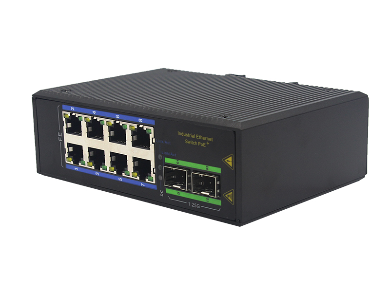 8路百兆POE電口+2路千兆FX光口工業級以太網POE交換機 |