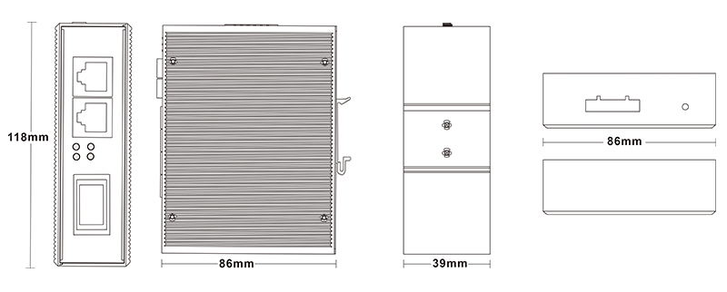 外殼:金屬材質(zhì) 安裝:DIN 卡軌式,壁掛式安裝 重量:0.36Kg 尺寸 :118 x 86 x 39mm (長 x 寬 x 高) |
