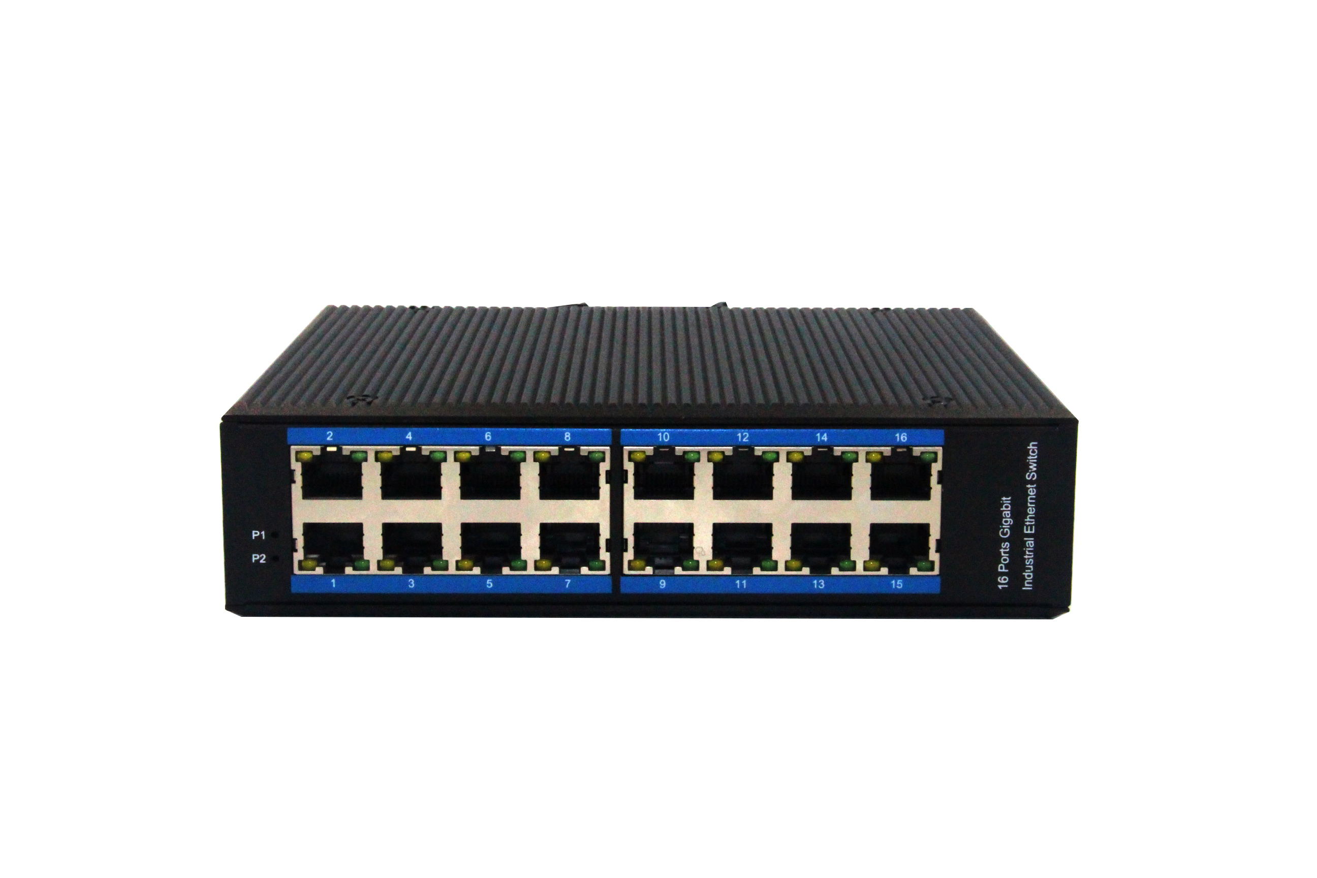16口千兆以太網交換機、導軌式、DC12-48V供電-寬溫(-40℃-85℃) |