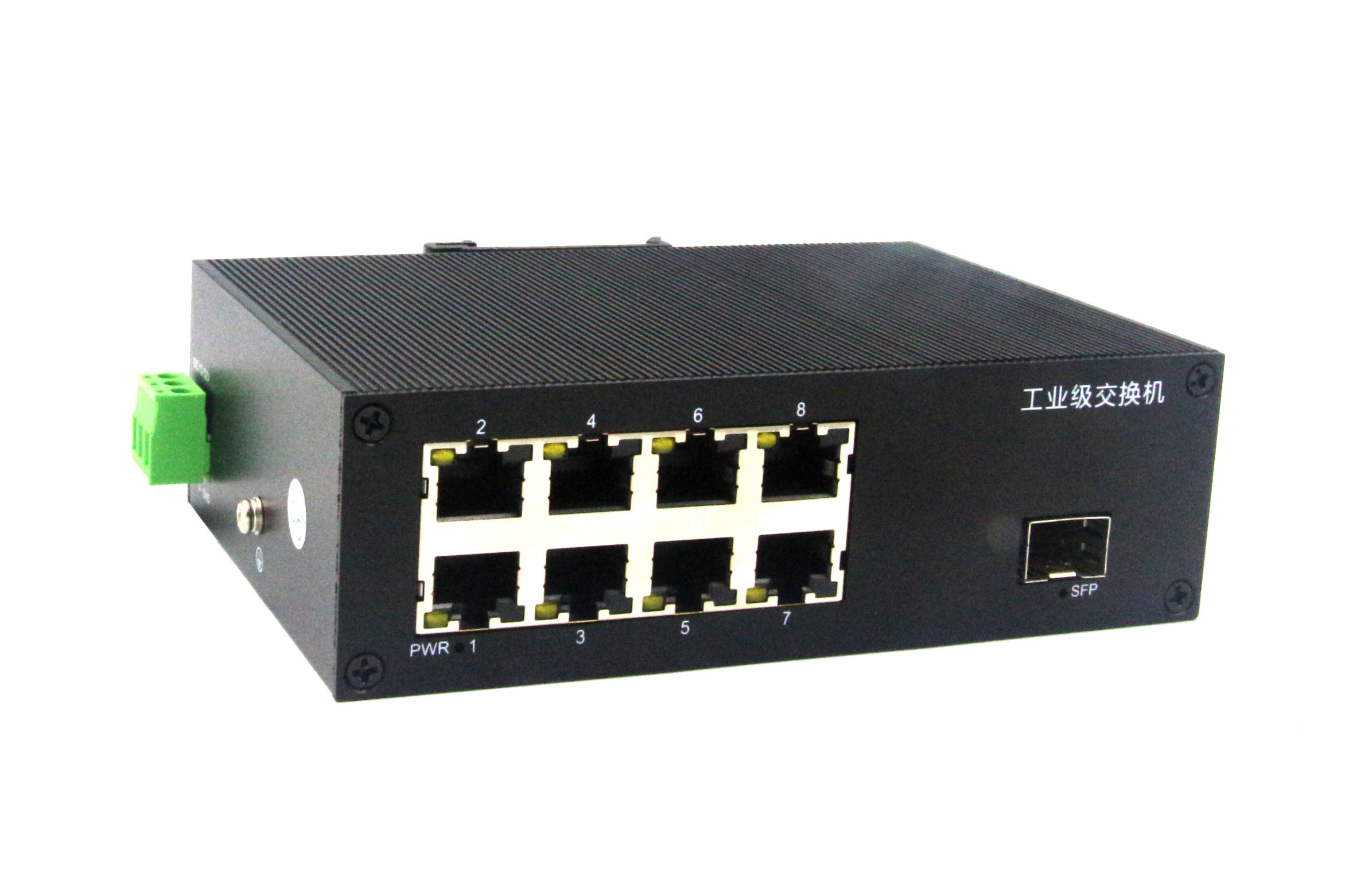 1個千兆光+8個千兆電、SFP接口(不含光模塊)、導軌式、DC12-48V供電-寬溫(-30℃-75℃)