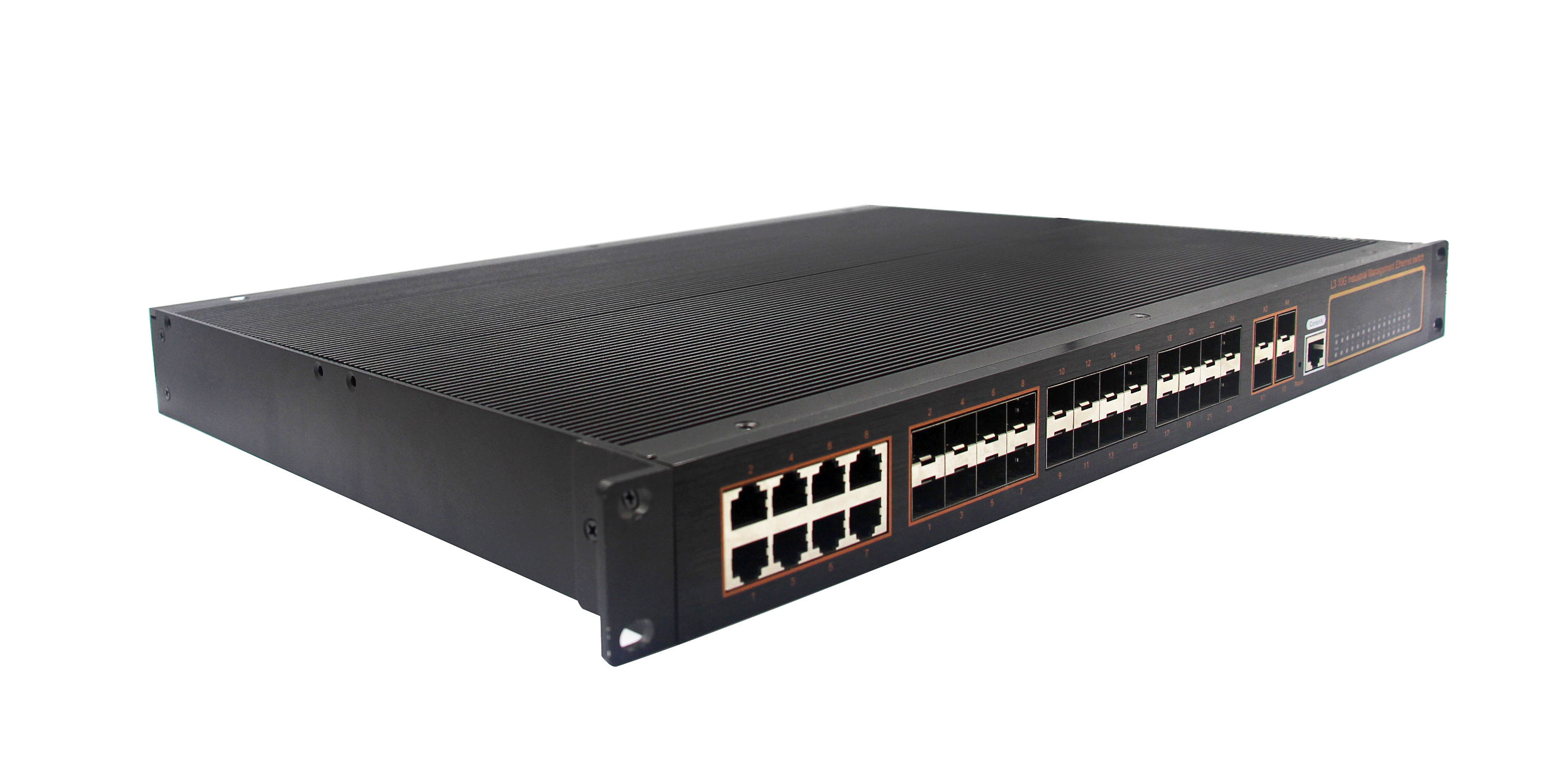 24個千兆光口;8個千兆復用電口;4個萬兆光;1個Console口;AC220V供電-寬溫(-40℃-80℃)-CE-RoHS-FCC-公安部檢驗報告-工信部入網許可證