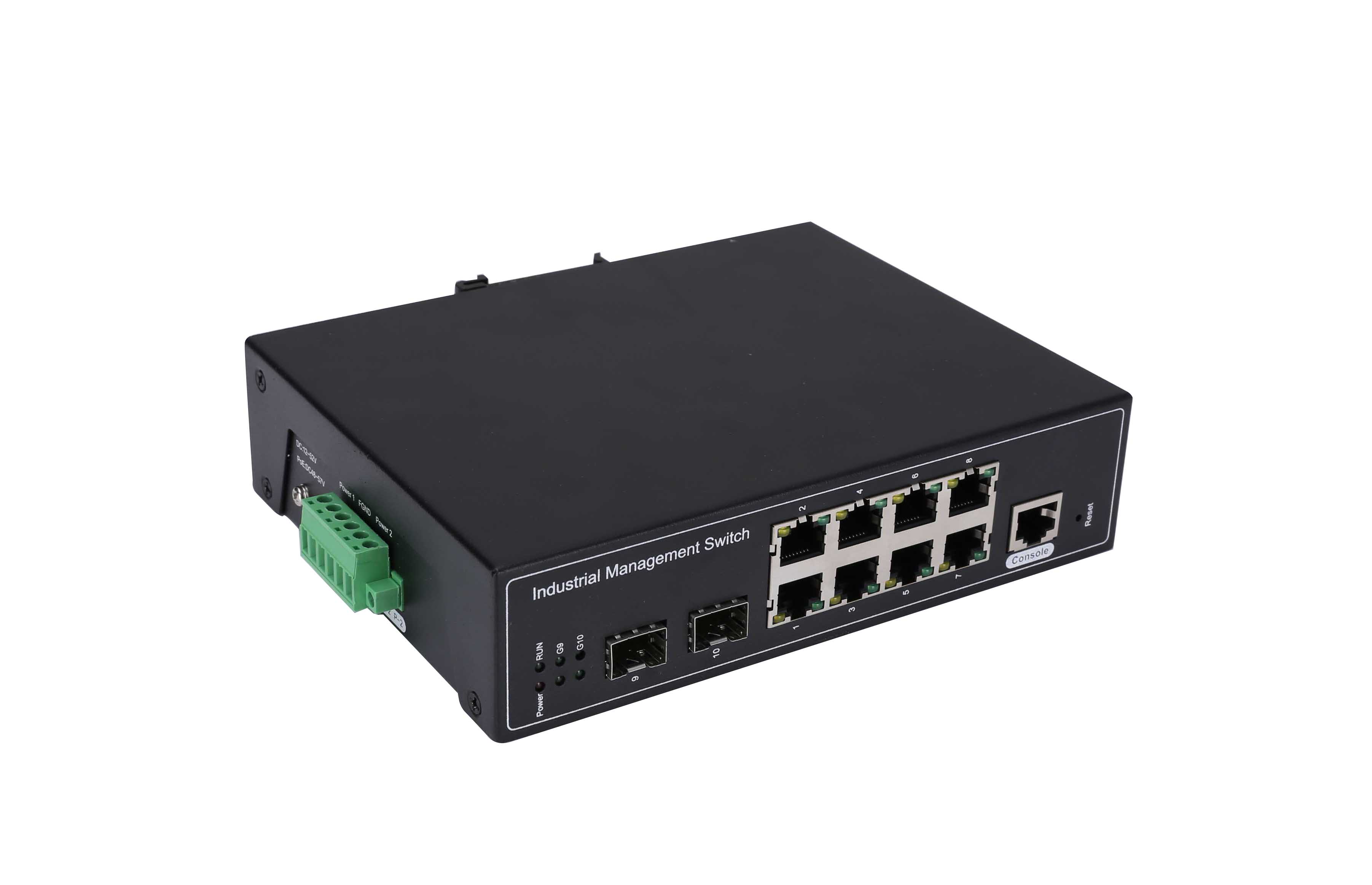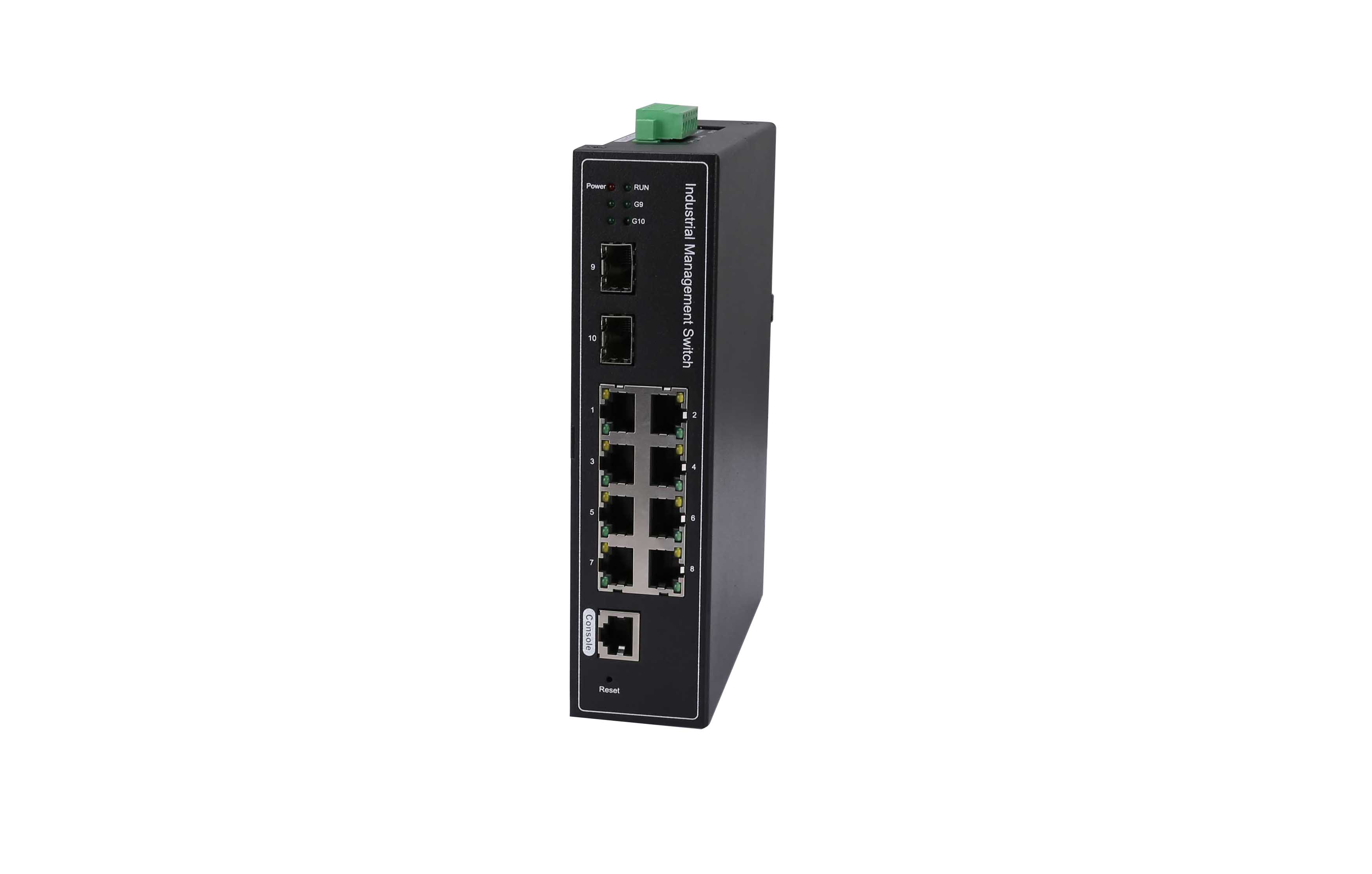 RDL28GFS-SFP是網管型工業以太網交換機,產品符合FCC、CE、ROHS標準。支持2個千兆光口和8個百兆電口,支持一路console口;支持工業現場所需的以太網二層協議,保證通信網絡的穩定性;該系列交換機采用低功耗、無風扇設計,確保無噪聲干擾,同時支持-40~75℃工作溫度和良好的EMC電磁兼容性能,保證在惡劣的工業環境中保持穩定的工作,為工廠自動化,智能交通,視頻監控等工業應用領域組建快速穩定的網絡終端接入網絡提供安全可靠的解決方案。