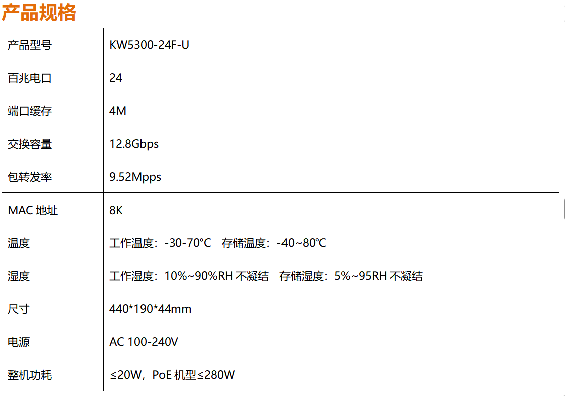 首頁產品系列百兆24電口交換機寬溫KW5300-24FP-U