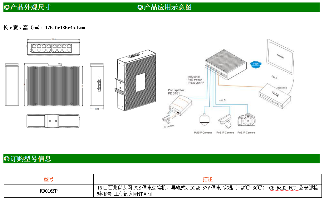 16路百兆電口工業級以太網交換機,支持16個10Base-T/100Base-TX POE電口。產品符合FCC、CE、ROHS標準。ZXR016FP交換機具有-40℃~80℃的工作溫度,具有超強的堅固度能適應各種嚴苛環境,也可以非常方便的安置在空間緊湊的控制箱中。導軌的安裝特性、寬溫操作及擁有IP40防護等級的外殼及LED指示燈,使ZXR016FP成為一個即插即用的工業級設備,為用戶的以太網設備聯網提供可靠、便捷的解決方案。