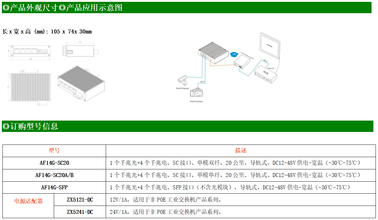 4路千兆電口+1路千兆FX光口工業(yè)級以太網(wǎng)交換機(jī),支持4個100Base-T/1000Base-TX電口和1個1000Base-X光口。產(chǎn)品符合FCC、CE、ROHS標(biāo)準(zhǔn)。AF14G系列交換機(jī)具有-30℃~75℃的工作溫度,具有超強(qiáng)的堅固度能適應(yīng)各種嚴(yán)苛環(huán)境,也可以非常方便的安置在空間緊湊的控制箱中。導(dǎo)軌的安裝特性、寬溫操作及擁有IP40防護(hù)等級的外殼及LED指示燈,使AF14G成為一個即插即用的工業(yè)級設(shè)備,為用戶的以太網(wǎng)設(shè)備聯(lián)網(wǎng)提供可靠、便捷的解決方案。