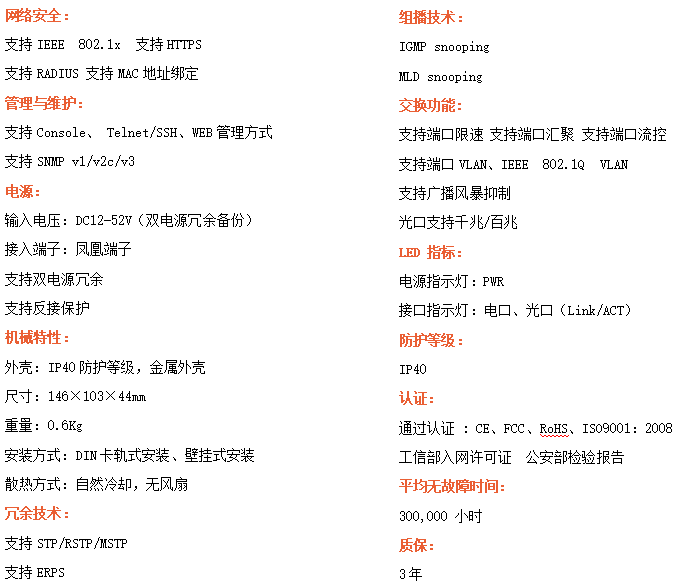 ●支持STP/RSTP/ERPS,SNMPv1/v2/v3,確保網絡安全