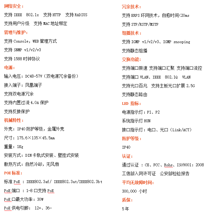●支持STP/RSTP/MSTP/ERPS,SNMPv1/v2/v3,確保網絡安全