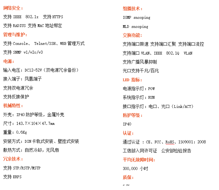 ●支持STP/RSTP/ERPS,SNMPv1/v2/v3,確保網(wǎng)絡(luò)安全