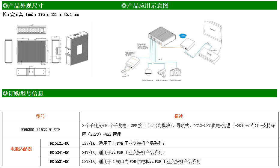 KW5300-216GFS-M-SFP是網管型工業以太網交換機,產品符合FCC、CE、RoHS標準。支持2個千兆光口和16個百兆電口;支持工業現場所需的以太網二層協議,保證通信網絡的穩定性;該系列交換機采用低功耗、無風扇設計,確保無噪聲干擾,同時支持-40~75℃工作溫度和良好的EMC電磁兼容性能,保證在惡劣的工業環境中保持穩定的工作,為工廠自動化,智能交通,視頻監控等工業應用領域組建快速穩定的網絡終端接入網絡提供安全可靠的解決方案。