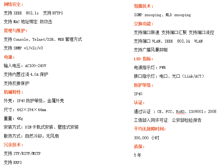 ●支持STP/RSTP/MSTP/ERPS,SNMPv1/v2c/v3,確保網絡安全