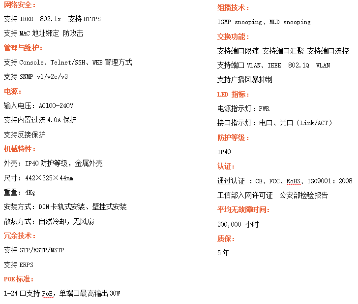●支持STP/RSTP/MSTP/ERPS,SNMPv1/v2c/v3,確保網絡安全