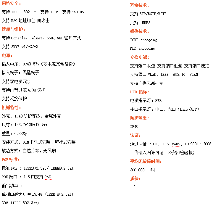 ●安全管理:支持ACL訪問控制列表,支持802.1X