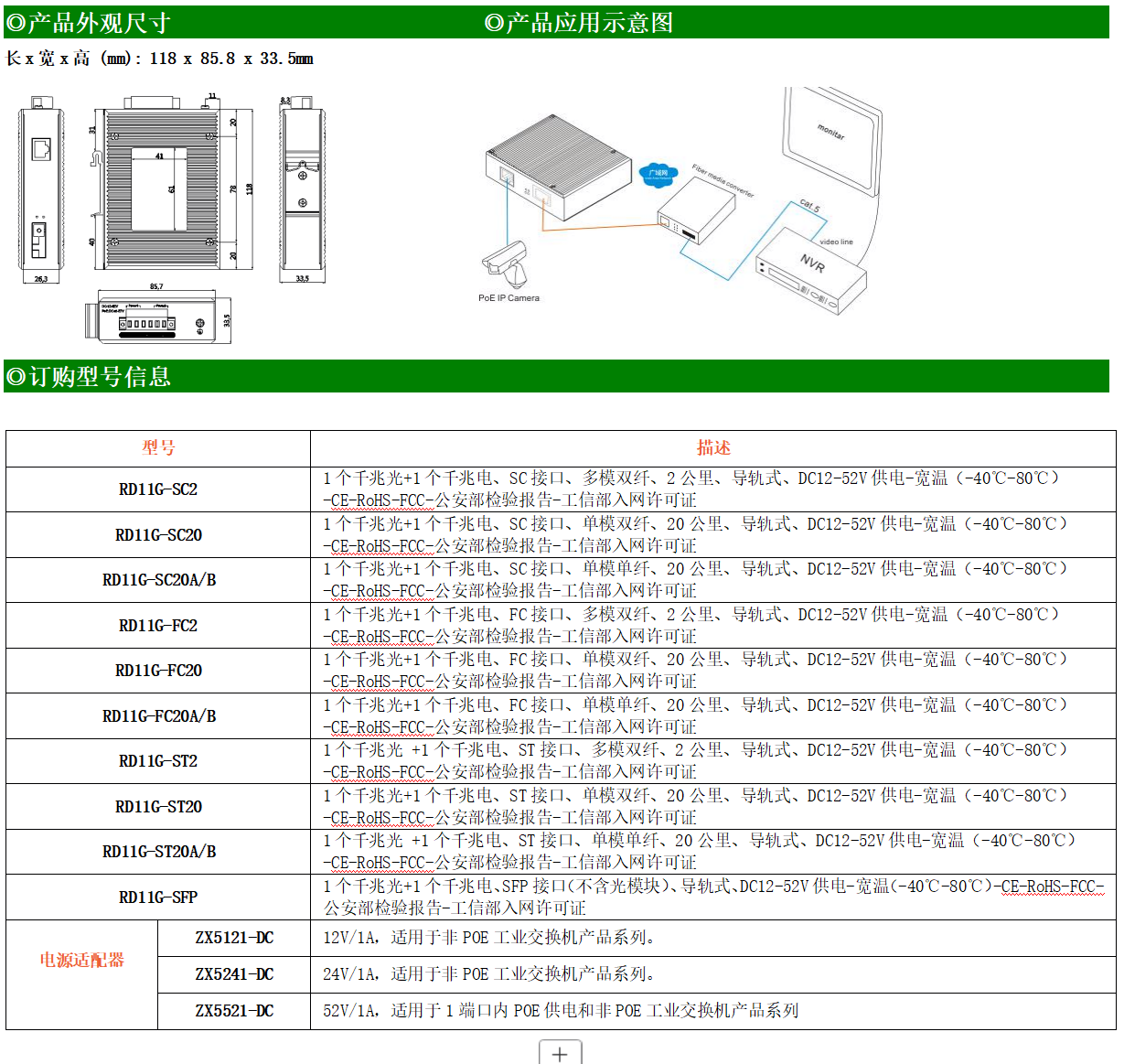●使用SC/FC/ST/SFP光纖接口