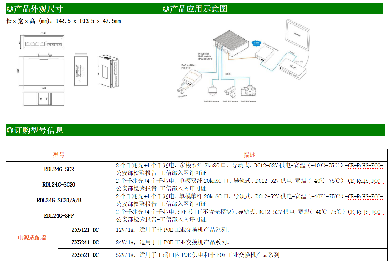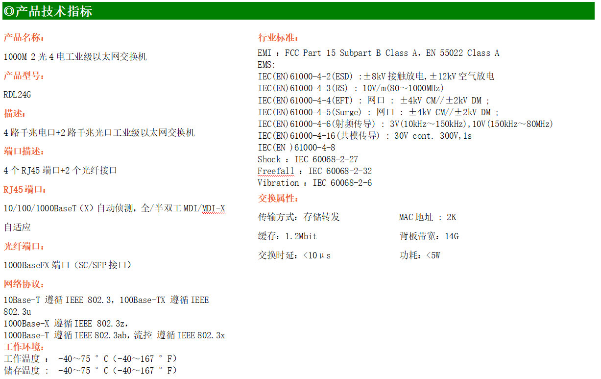 4路千兆電口+2路千兆FX光口工業(yè)級(jí)以太網(wǎng)交換機(jī),支持4個(gè)100Base-T/1000Base-TX電口和2個(gè)1000Base-X光口。產(chǎn)品符合FCC、CE、ROHS標(biāo)準(zhǔn)。RDL24G交換機(jī)具有-40℃~75℃的工作溫度,具有超強(qiáng)的堅(jiān)固度能適應(yīng)各種嚴(yán)苛環(huán)境,也可以非常方便的安置在空間緊湊的控制箱中。導(dǎo)軌的安裝特性、寬溫操作及擁有IP40防護(hù)等級(jí)的外殼及LED指示燈,使RDL24G成為一個(gè)即插即用的工業(yè)級(jí)設(shè)備,為用戶(hù)的以太網(wǎng)設(shè)備聯(lián)網(wǎng)提供可靠、便捷的解決方案。