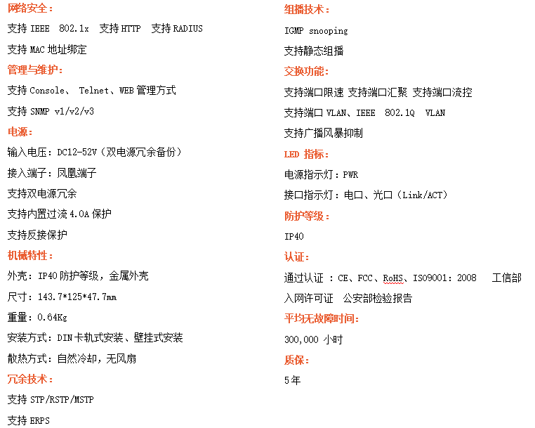 ●支持STP/RSTP/ERPS,SNMPv1/v2/v3,確保網(wǎng)絡(luò)安全
