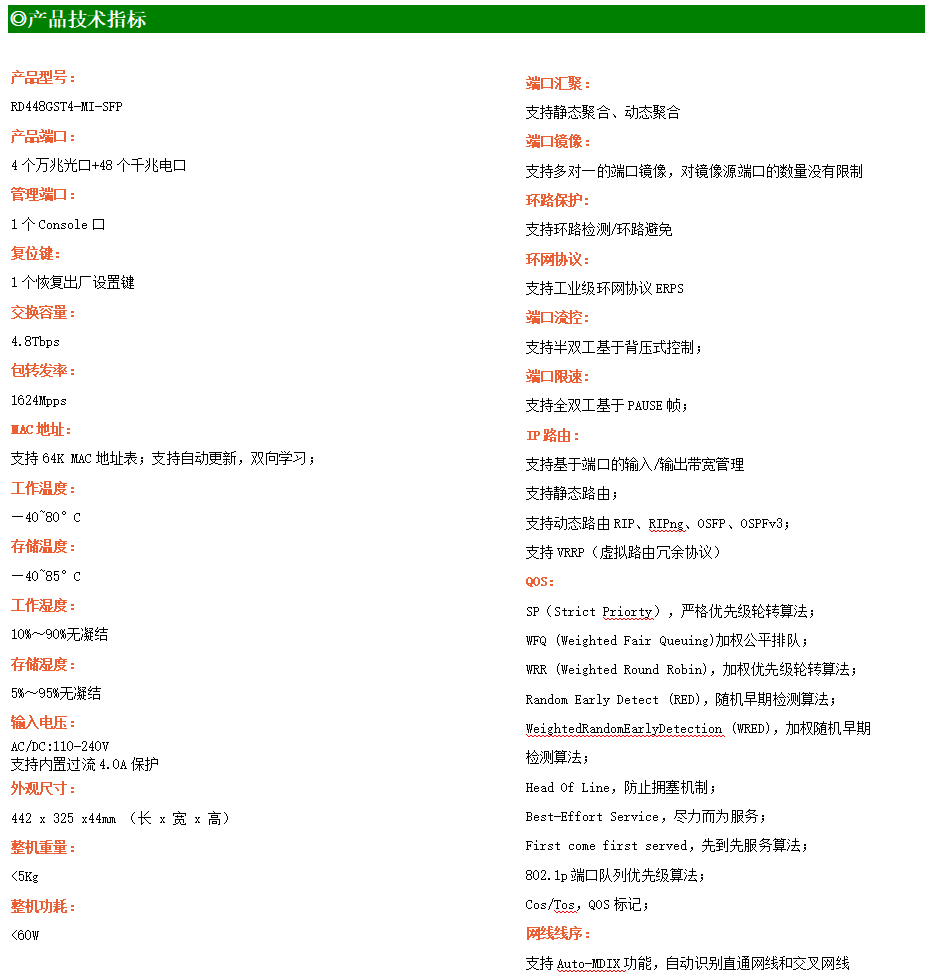 ●網(wǎng)絡(luò)冗余:支持STP/RSTP/MSTP,支持ERPS(自愈時間<20ms)