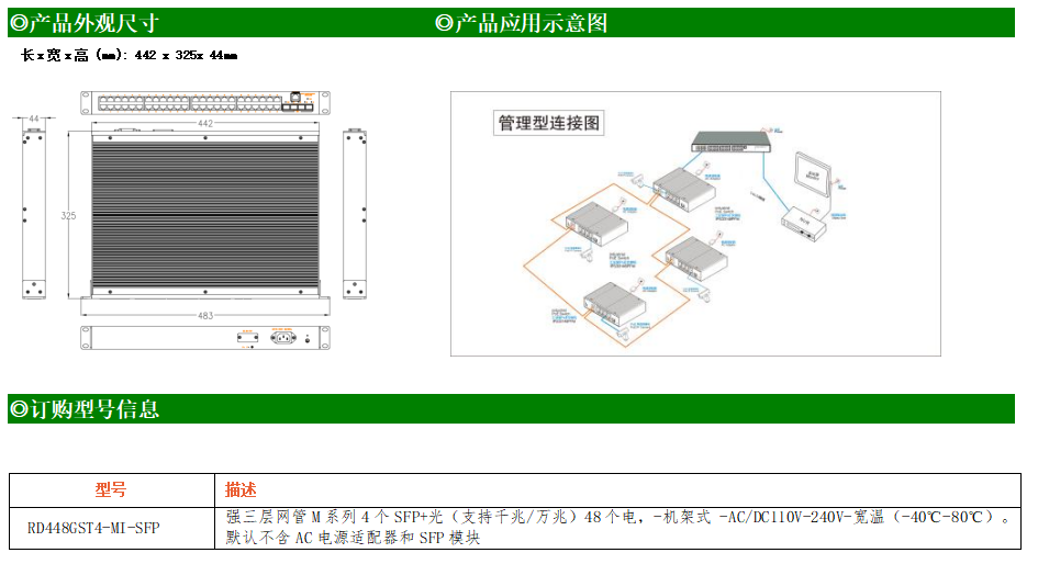 RD448GST4-MI-SFP交換機是我司推出的一款萬兆三層交換機,配備4個萬兆SFP+光口和48個10/100/1000M Base-T自適應(yīng)電口,具備先進(jìn)的硬件處理能力和最豐富的業(yè)務(wù)特性。支持IPv4/IPv6 硬件雙棧及線速轉(zhuǎn)發(fā),使客戶能夠從容應(yīng)對即將帶來的IPv6 時代其提供高容量的交換能力。RD448GST4-MI-SFP交換機具有-40℃~80℃的工作溫度,具有超強的堅固度能適應(yīng)各種嚴(yán)苛環(huán)境,使RD448GST4-MI-SFP的交換機成為一個即插即用的工業(yè)級設(shè)備,為用戶的以太網(wǎng)設(shè)備聯(lián)網(wǎng)提供可靠、便捷的解決方案。