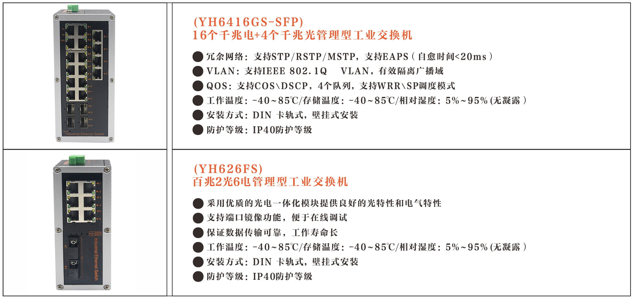 (5) 采用YH®自愈環(huán)網(wǎng)技術(shù),快速自愈保護(hù),提供高可靠通信的保證 (6) 抗擊強電磁干擾和浪涌,在-40℃~85℃的環(huán)境溫度中無風(fēng)扇穩(wěn)定運行,適合惡劣環(huán)境下應(yīng)用