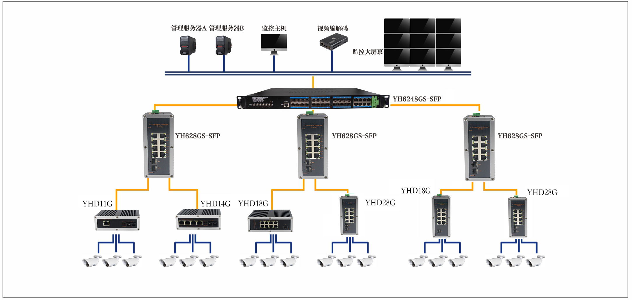 宇航在整個水電站視頻網絡監控系統中采用了YH6248G4TS-SFP,YH628GS-SFP, YH611G,YH614G,YH618G,YH628G,YH618GF,YH628GF聚多個環網數據匯聚到YH6248G4TS-SFP上傳到控制監控中心,保障了各個監控點監控到位,與正常通信提高網絡數據傳輸的高效性,提高水電站的安全運行水平。